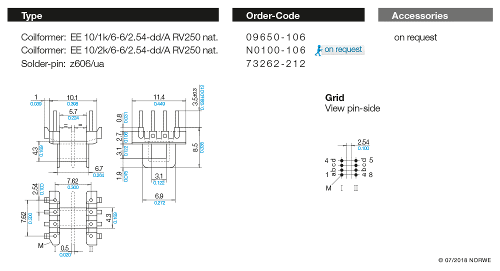 EE 10/1k/6-6/2,54-dd/A RV250 nat. – Bestellcode 09650-106