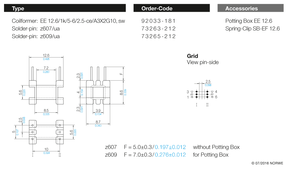 EE 12,6/1k/5-6/2,5-ce/A3X2G10, sw – Bestellcode 92033-181