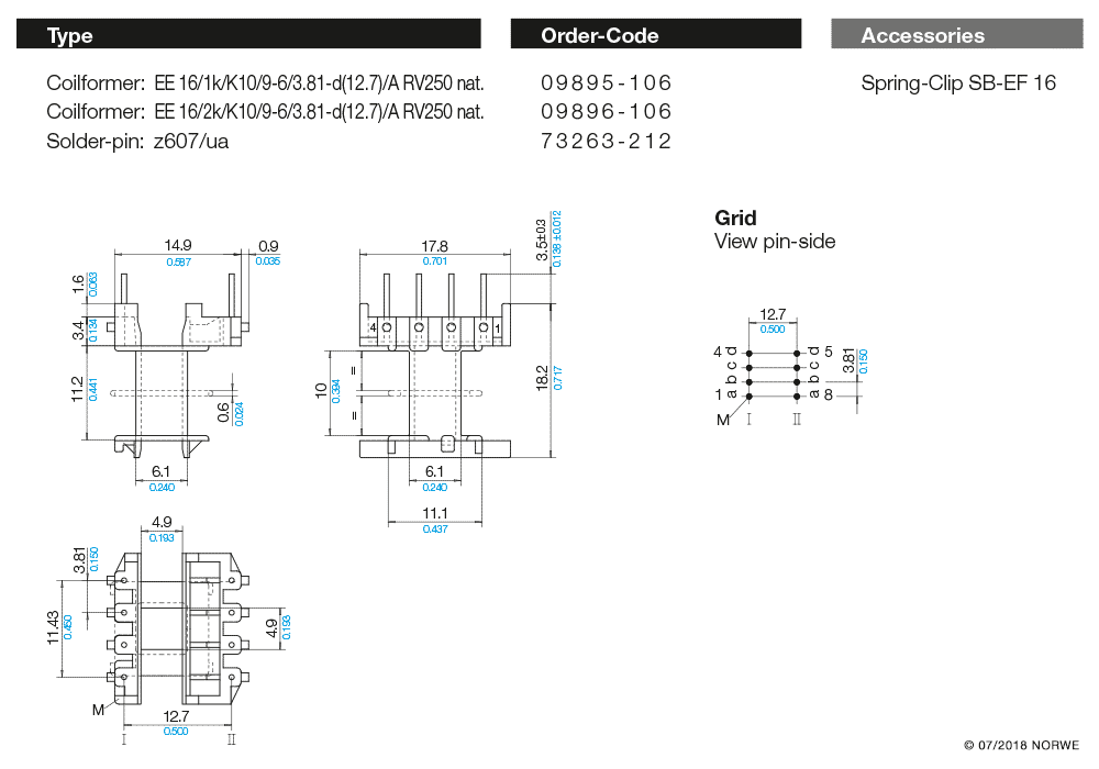 EE 16/1k/K10/9-6/3,81-d(12,7)/A RV250 nat. – Bestellcode 09895-106