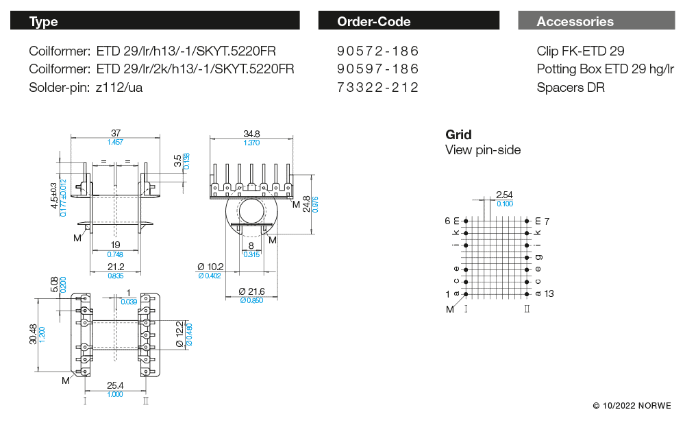 ETD Spulenkörper Horizontal