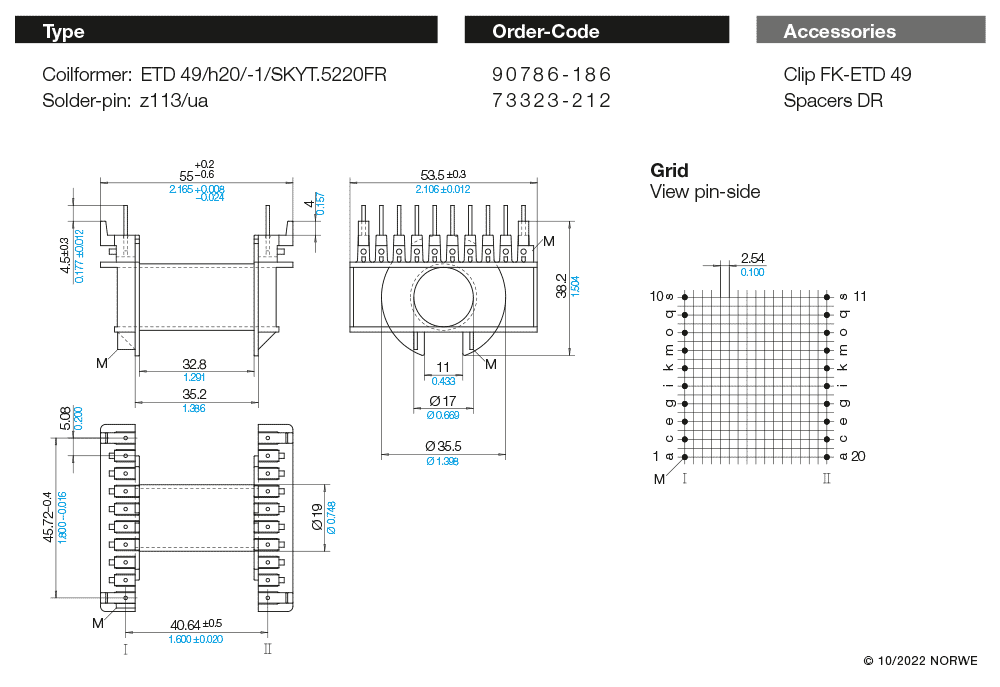 ETD Spulenkörper Horizontal