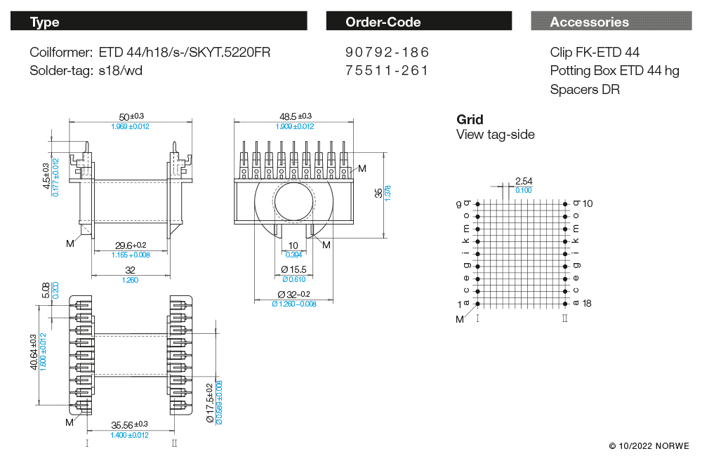 Vergussgehäuse / Potting Box ETD 44/hg (PDF)