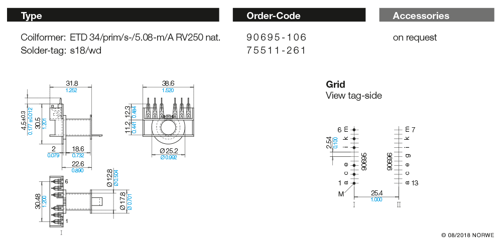 ETD 34/prim/s-/5,08-m/A RV250 nat. – Bestellcode 90695-106