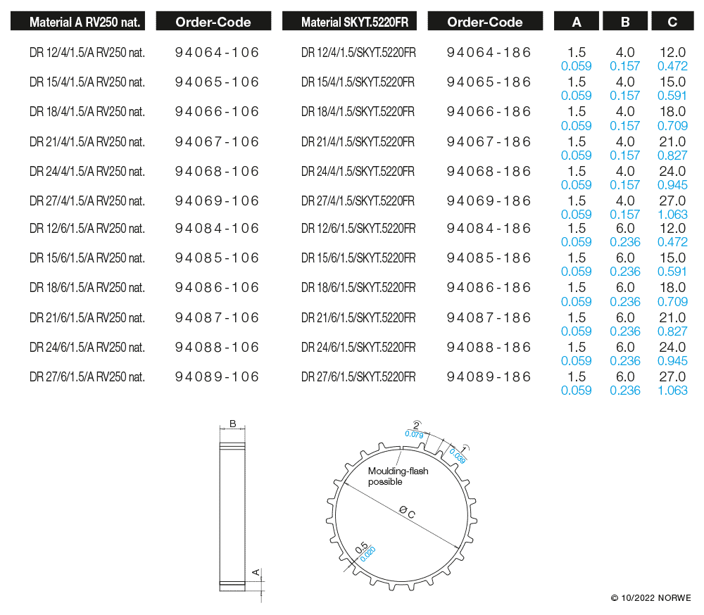 DR 27/6/1,5/A RV250 nat. – Bestellcode 94089-106