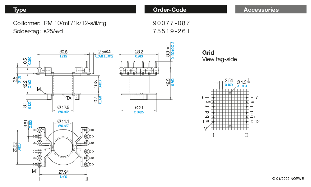 RM Standardbauhöhe, RM-LP Low Profile Bauhöhe mit linear angeordneten Lötschwertern