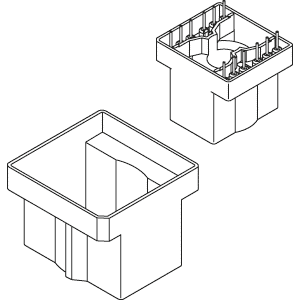 Die Vergussgehäuse sind aus glasfaserverstärktem Polyamid PA66, A RV250 nat. (RTI Dauergebrauchstemperatur +100°C). Sondermaterialien - z.B. Strahlenvernetzung - und -ausführungen auf Anfrage, Abmessungen in mm/inch.