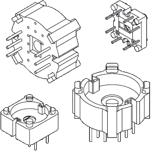 Die Spulenkörper - in Anlehnung an DIN 41294 - mit halber Bauhöhe eignen sich besonders für den Aufbau von Näherungsschaltern und sind von der Schalenkerngröße 9x5 mm (0,354x0,197 inch) bis 70x42 mm (2,756x1,654 inch) verfügbar.