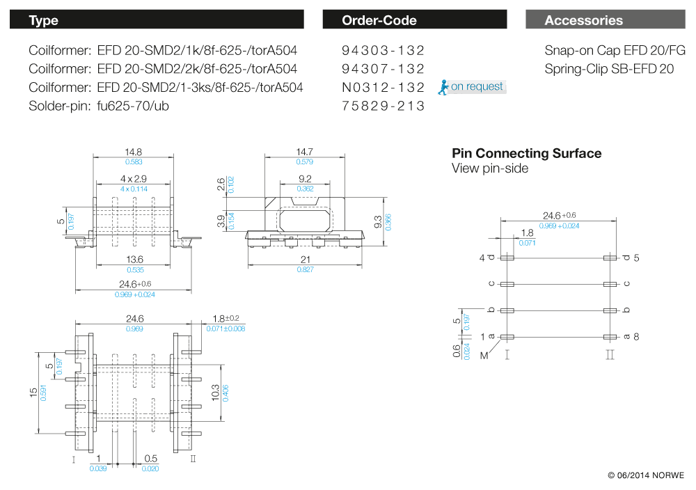 EFD 20-SMD2/1-3ks/8f-625-/torA504 – Bestellcode N0312-132