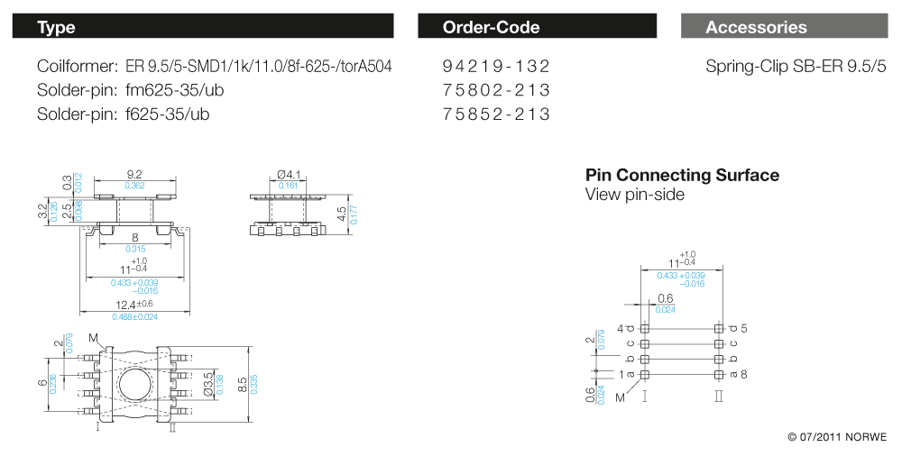 ER 9,5/5-SMD1/1k/11,0/8f-625-/torA504 – Bestellcode 94219-132