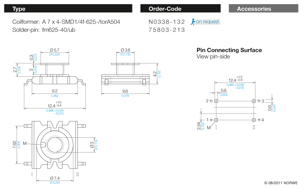 A 7 x 4-SMD1/4f-625-/torA504 – Bestellcode N0338-132