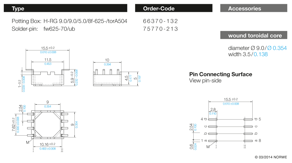 Ringkern- Vergussgehäuse für SMD-Technik (fw)