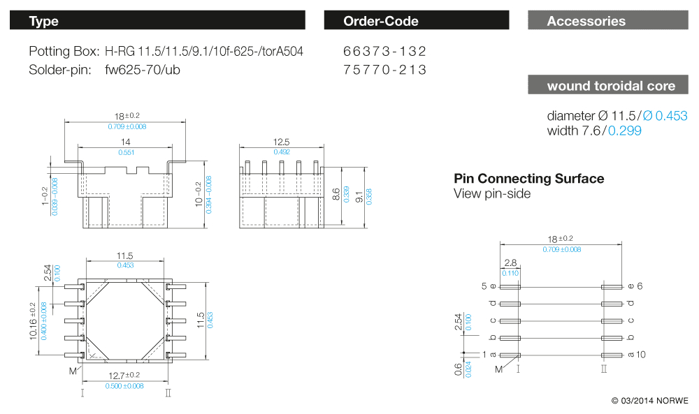 Ringkern- Vergussgehäuse für SMD-Technik (fw)