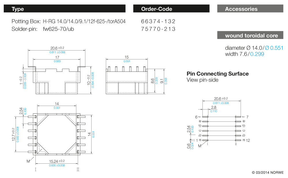 Ringkern- Vergussgehäuse für SMD-Technik (fw)