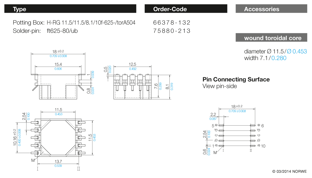 Ringkern- Vergussgehäuse für SMD-Technik (ft)