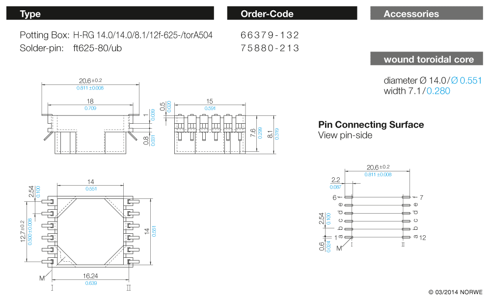 Ringkern- Vergussgehäuse für SMD-Technik (ft)