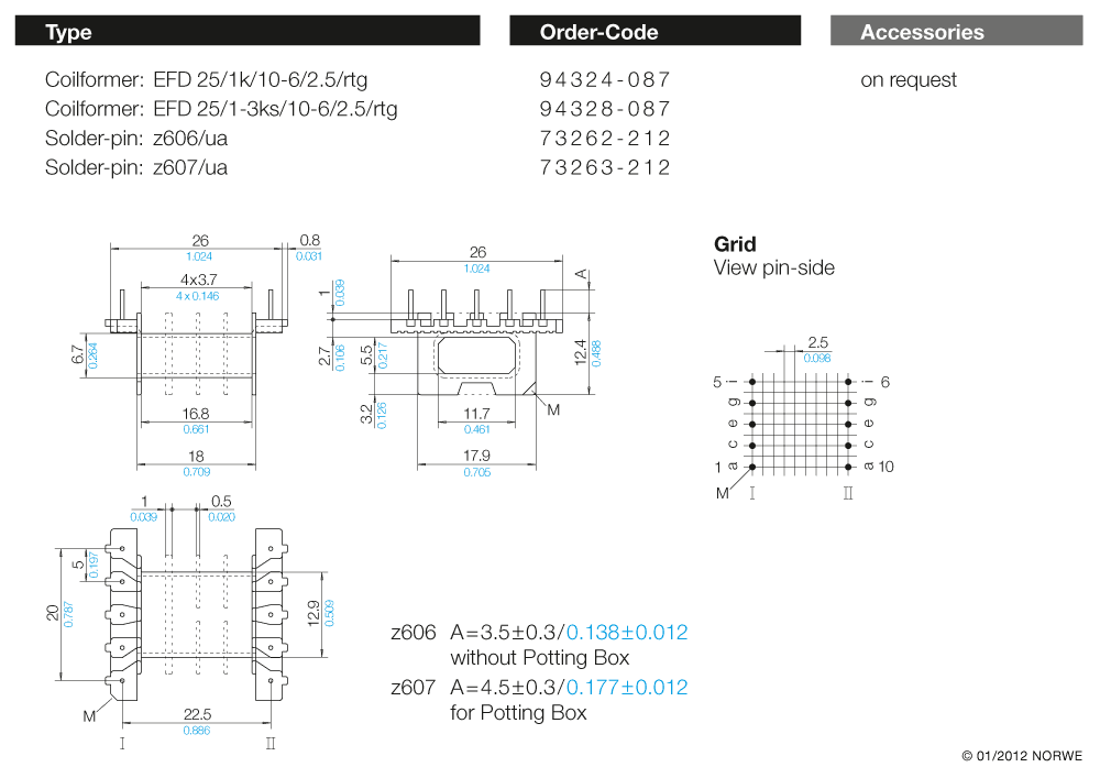 Vergussgehäuse / Potting Box EFD 25/vlf (PDF)