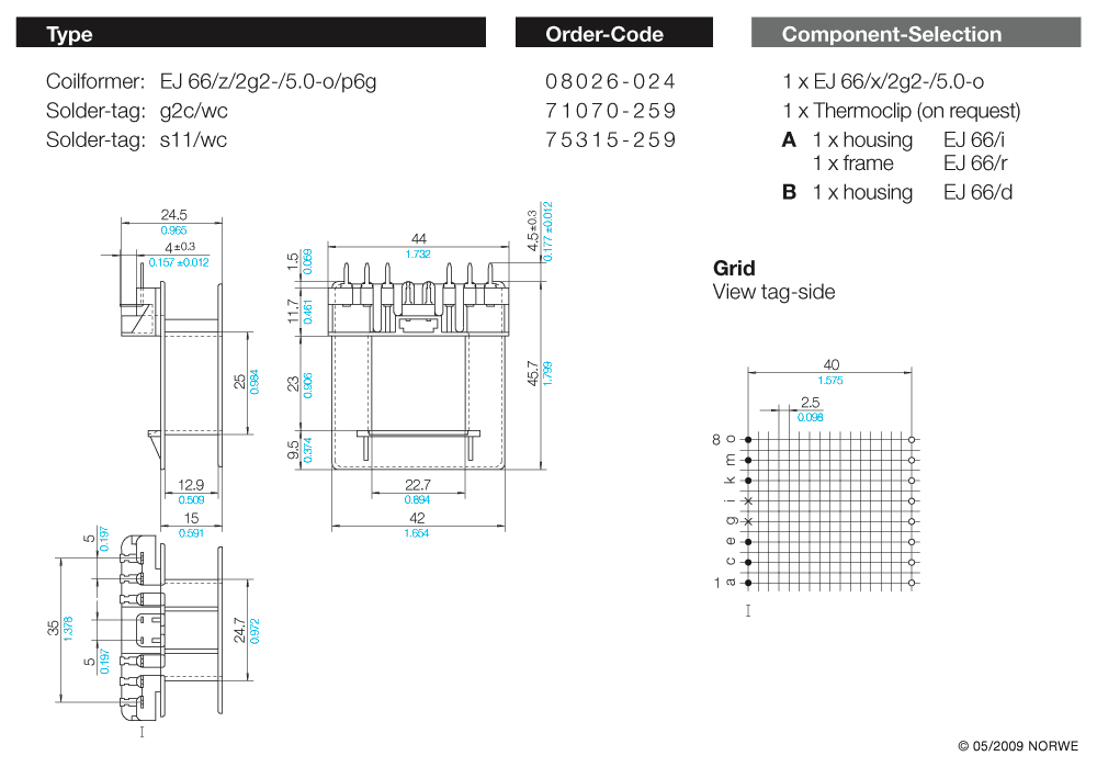 Spulenkörper / Coilformer EJ 66/x/2g2-/5,0-o (PDF)