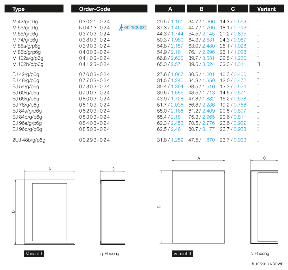 Gehäuse g für M, EJ, UJ Spulenkörperelemente. Gehäuse c für M Spulenkörperelemente.