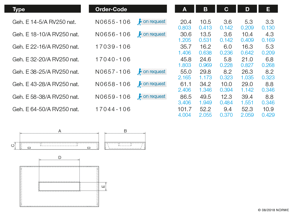 Geh. E18-10/A RV250 nat. – Bestellcode N0656-106