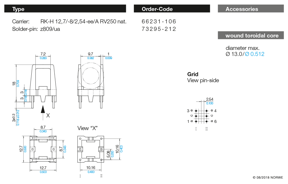 RK-H 12,7/-8/2,54-ee/A RV250 nat. – Bestellcode 66231-106